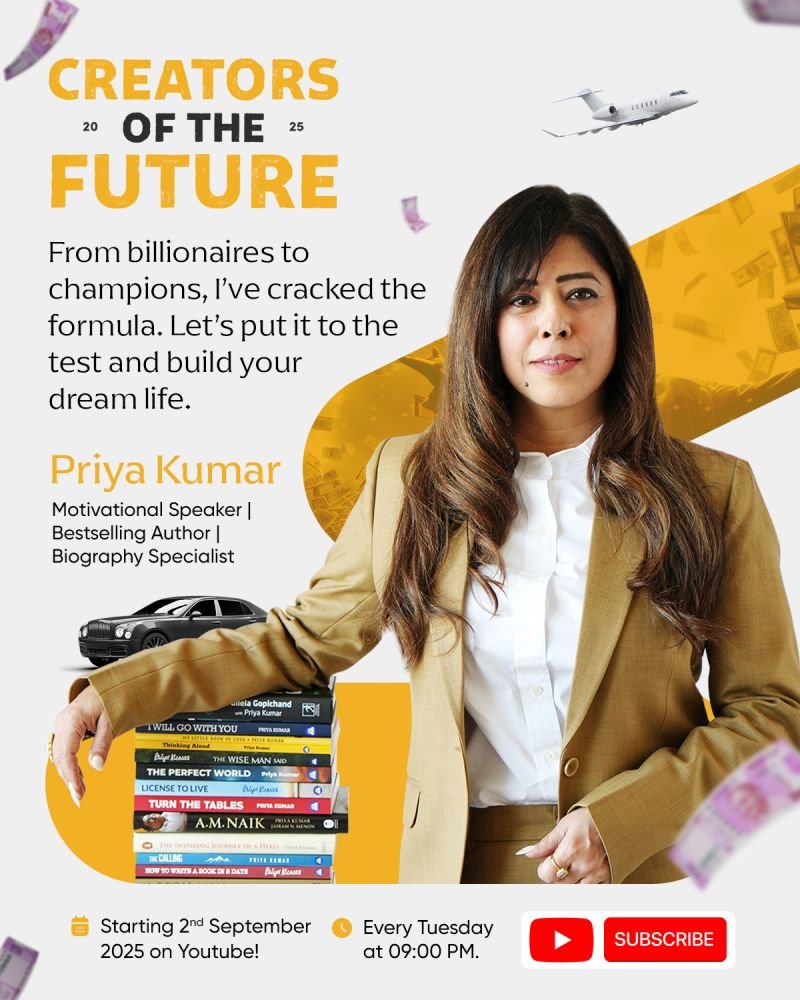 Priya has written 17 inspirational books, winning 46 international book awards. Her works have been translated into 11 languages, and one adapted into a Zee5 web-series.
